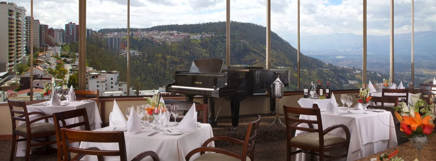 Restaurante panorámico en el piso 14 del Hotel Quito con vistas espectaculares de la ciudad y el Pichincha. Propone cocina internacional de alta calidad con…